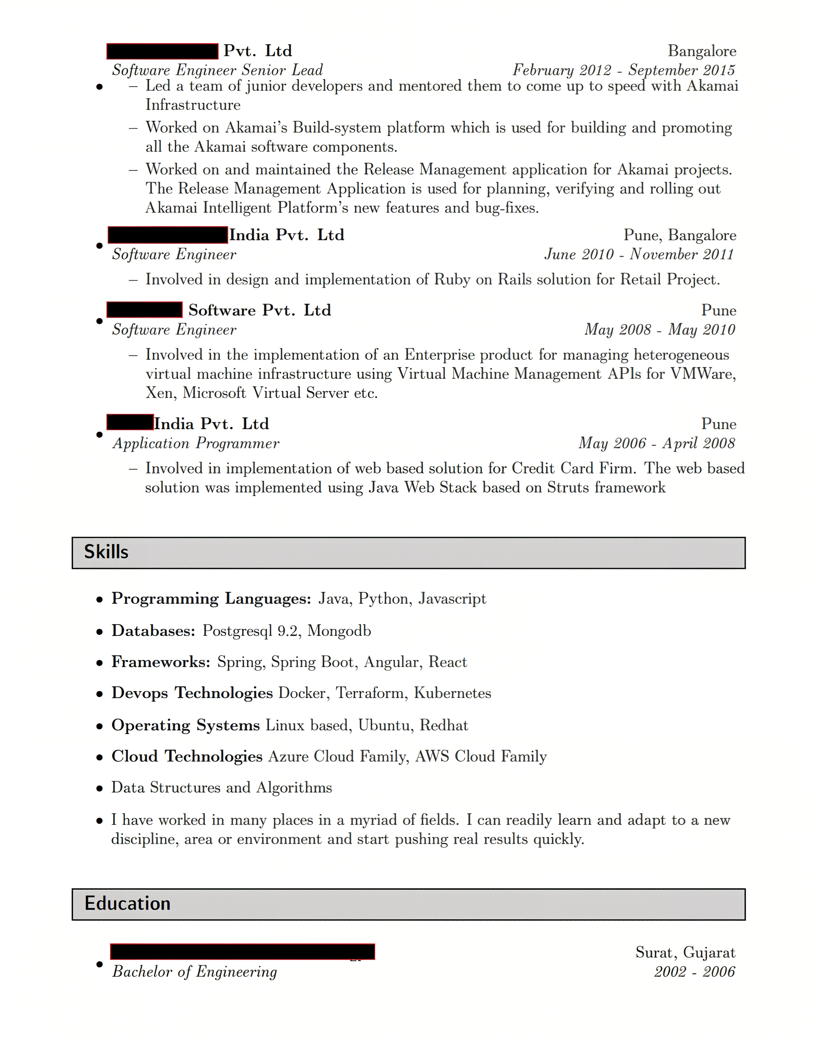 - Sample template: Senior software engineer resume